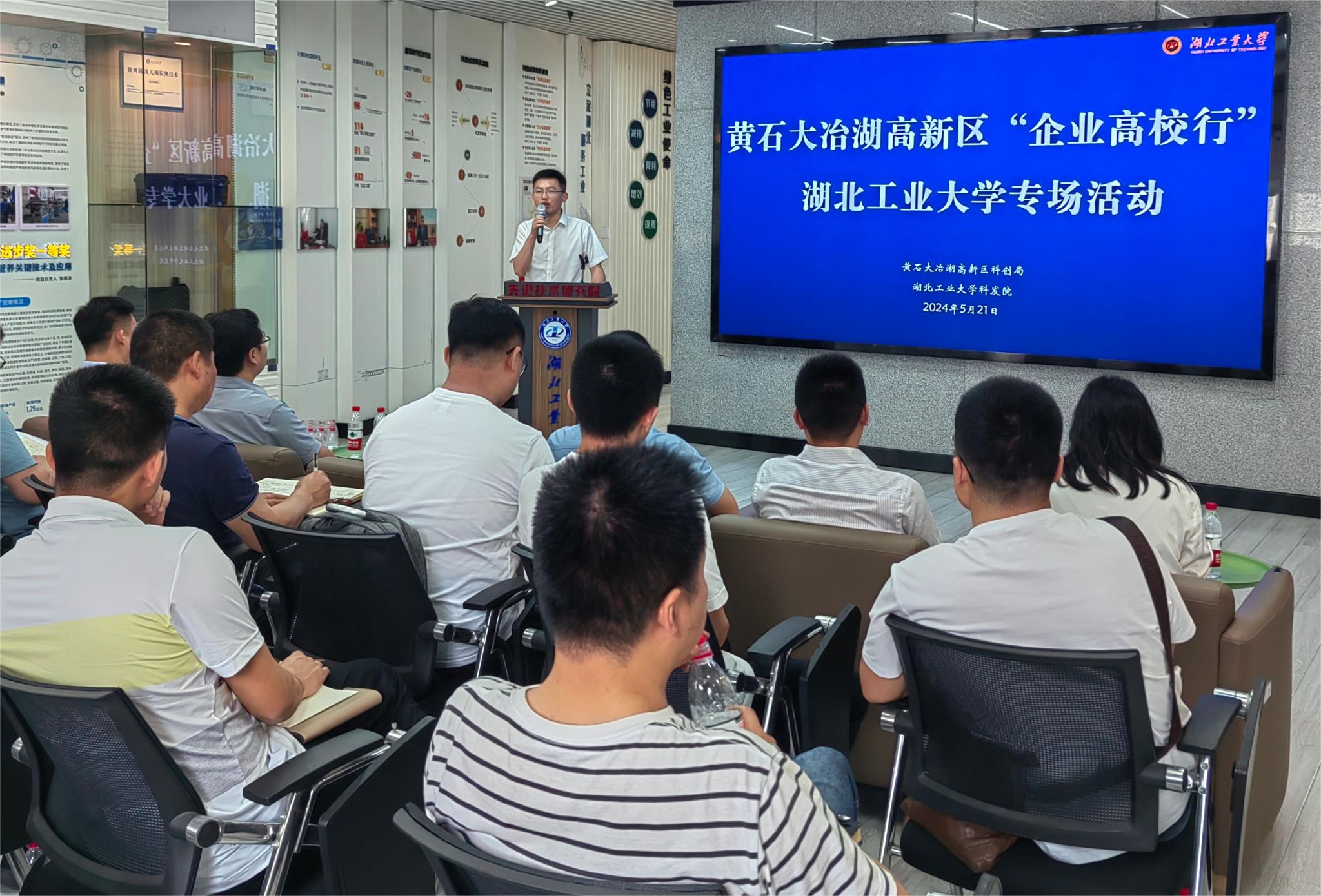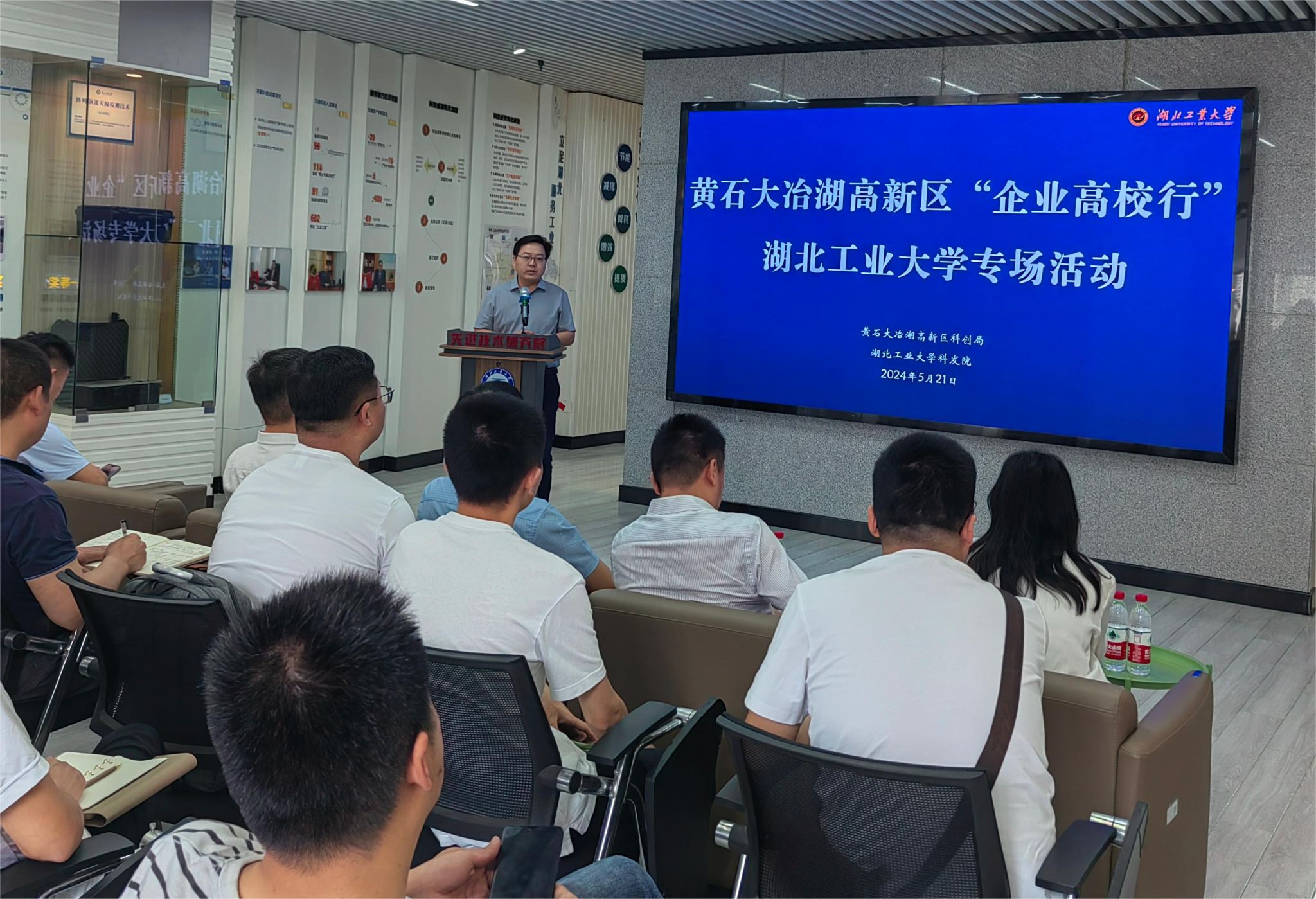 为进一步加强校地交流合作,落实校企对接工作,5月21日大冶市副市长杨海涛带队在成果转化中心举行大冶湖高新区“企业高校行”湖北工业大学专场活动。大冶湖高新区党工委委员、管委会副主任张龙坤、我校科发院副院长刘凯及机械工程学院、生命科学与健康工程学院、材料与化学工程学院、工业设计学院部分教师代表参加。