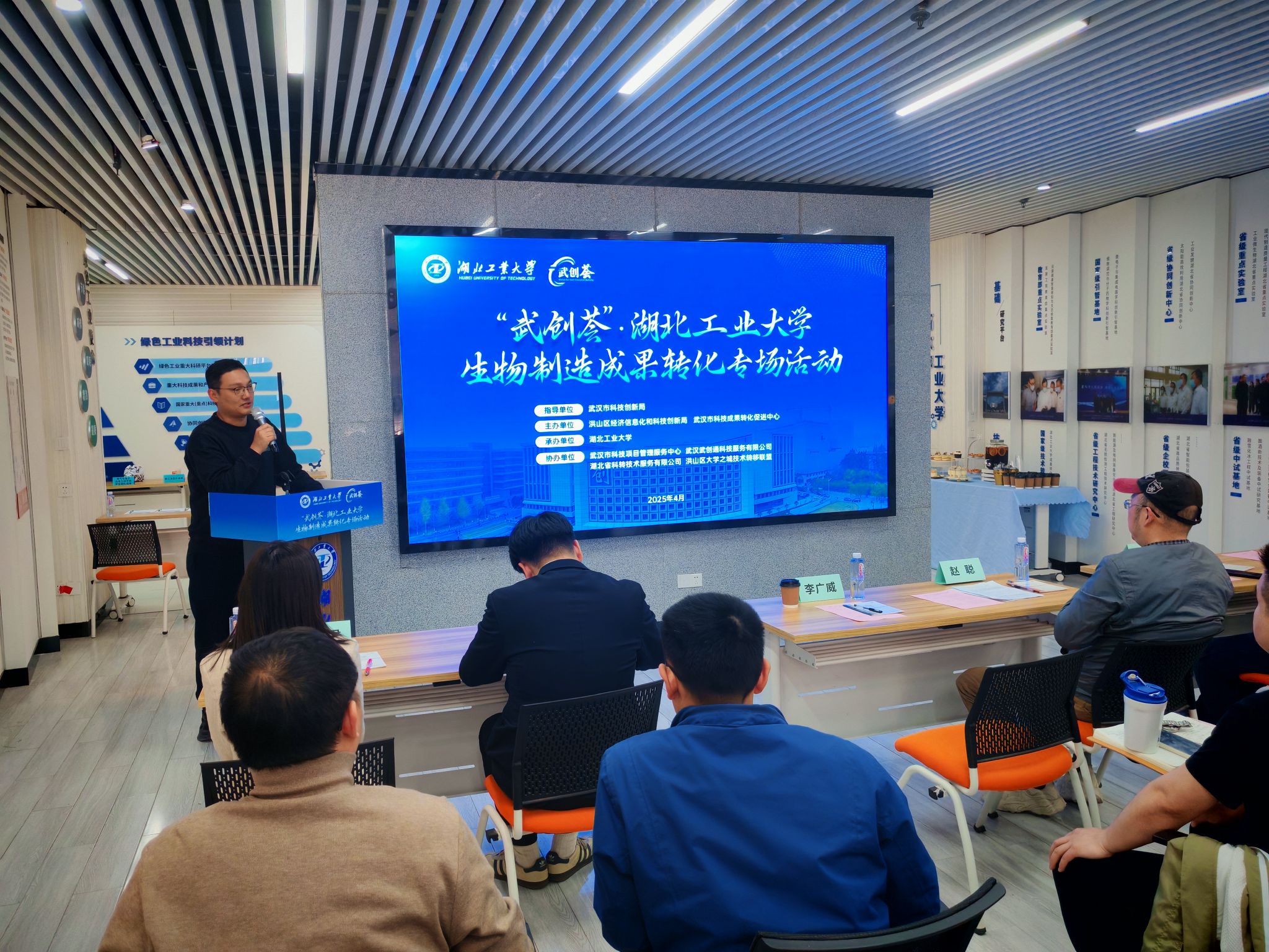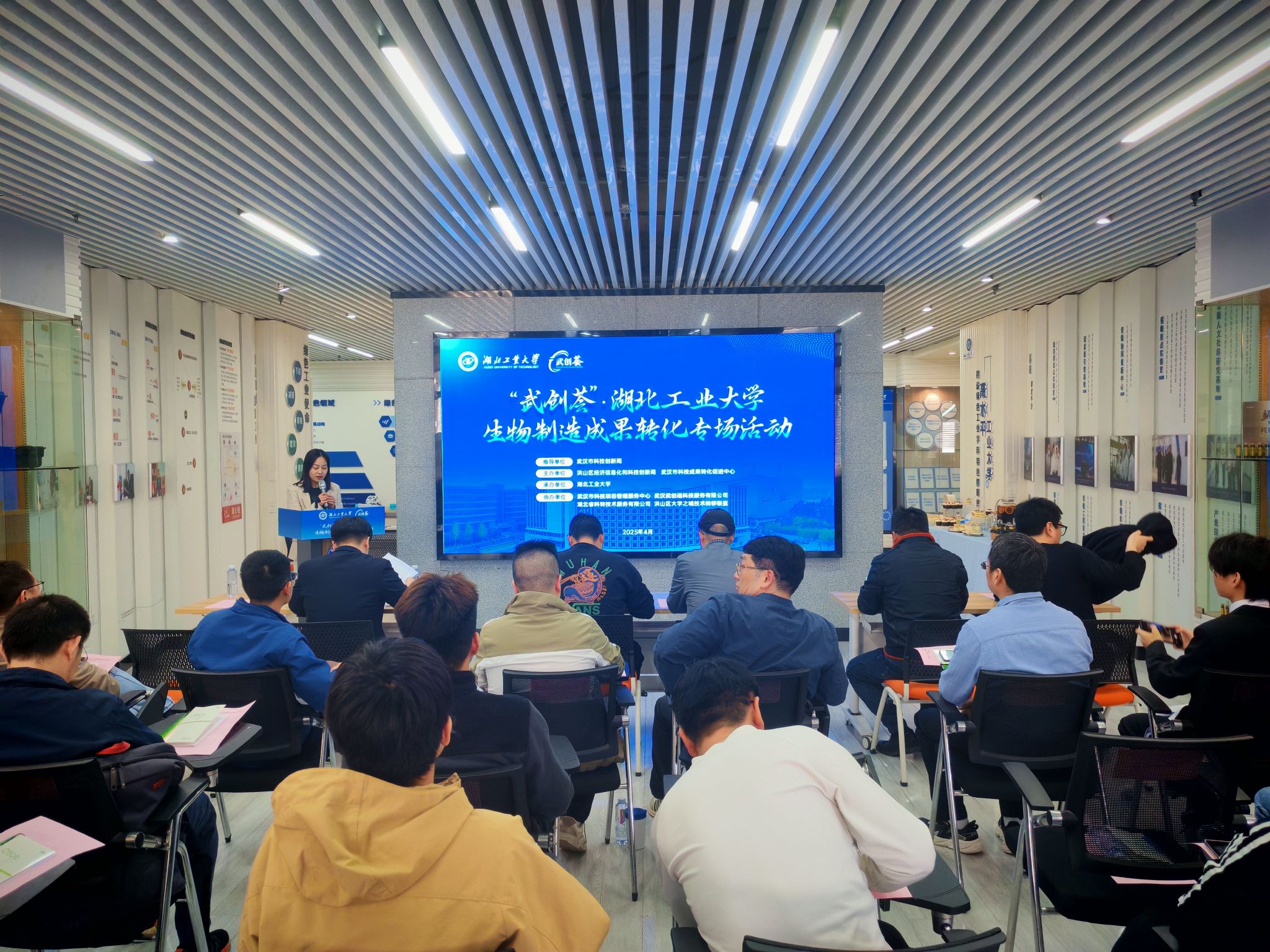 2025年4月3日,由洪山区经济信息化和科技创新局与武汉市科技成果转化促进中心联合主办、湖北工业大学承办的“武创荟”湖北工业大学2025年生物制造成果转化专场活动在湖北工业大学实训楼成功举办。本次活动汇聚了生物制造领域的20余家科技型企业、金融机构及专业服务机构代表,共同探讨生物制造领域的技术突破、产业协同与成果转化路径,助力湖北工业大学成果转化,打造全国生物经济新高地。