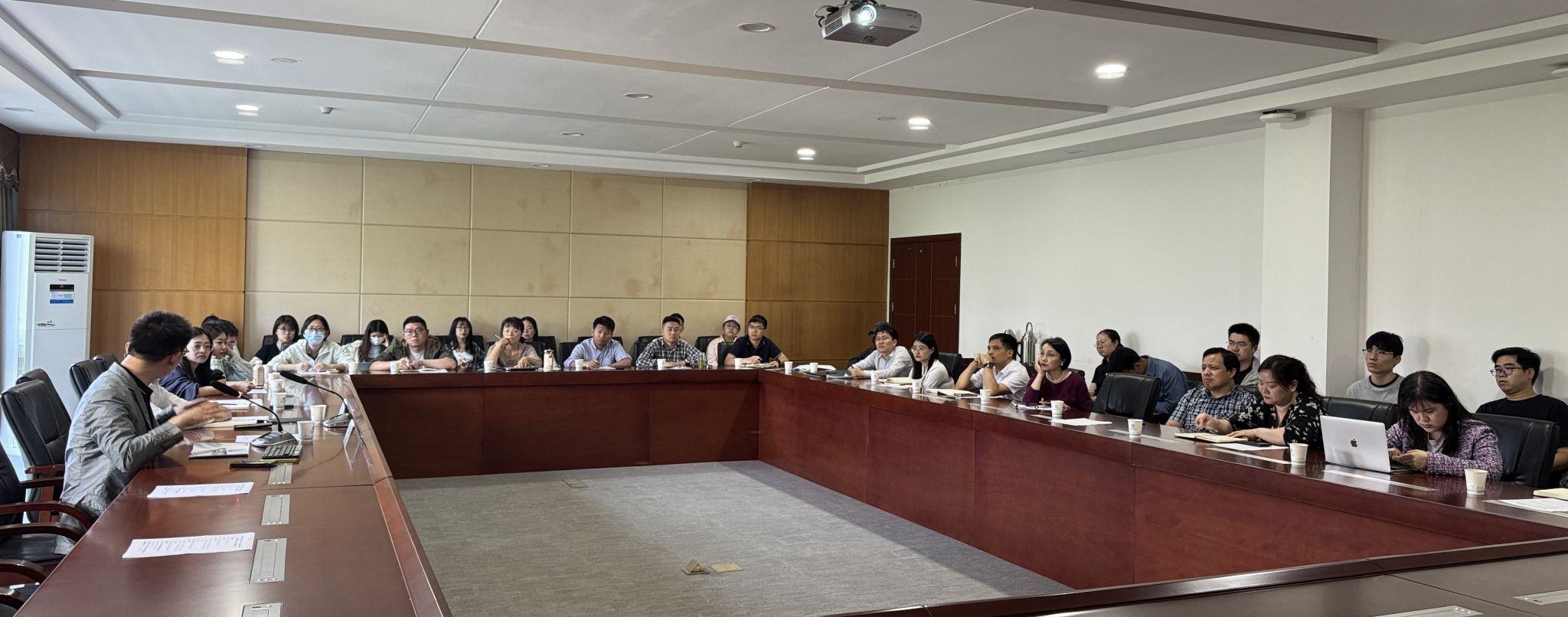 会议第二阶段,校科发院人文社科办主任鲁菁主持2025年度智库立项课题反馈会,向各课题组传达了在实际研究过程中可持续改进的方向和思路。