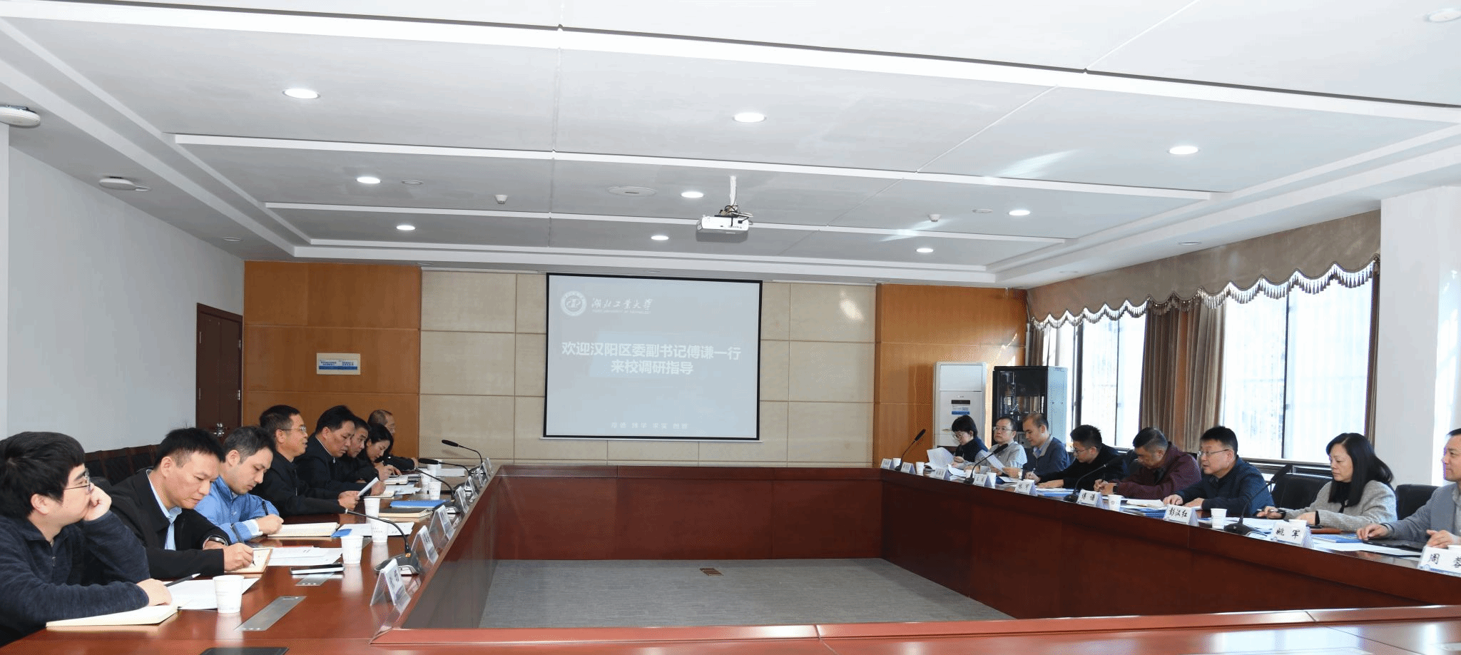 10月23日下午,汉阳区委副书记傅谦率队来校洽谈校地合作,校党委常委、副校长陈自才陪同调研并出席座谈交流活动。