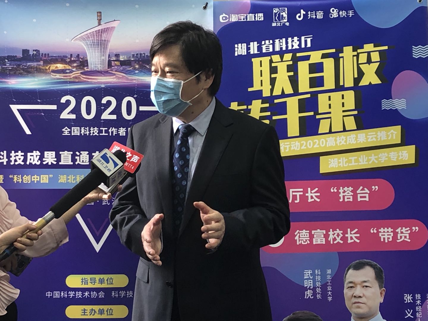 湖北省科技厅厅长王炜在直播开场白中说,2020年,省科技厅启动实施“科技成果转化工程”,今天通过“云推介”的形式,举办省属高校的首场“直播带货”活动,为大家推荐展示湖北工业大学的科技成果。这既是适应疫情常态化防控形势、线上推进科技成果转化的一次创新尝试,也是挖掘高校科技成果富矿、以科技创新助力企业复工复产的一项重要举措。相信通过今天直播活动,能够让大家更加了解湖北工业大学的科技实力,也更有信心承接湖北高校科技成果转移转化。