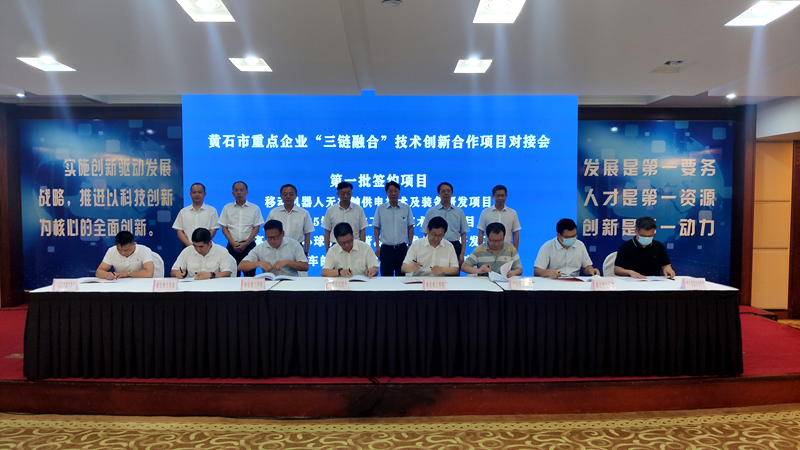 黄石市重点企业“三链融合”技术创新合作项目对接会上,李冬生代表学校致辞,我校“新型植物富色食品生产与品质控制与关键技术”、“桁架结构的5轴(直线电机)加工中心设计”、“冲压注塑一体化产品模具开发”等3项技术项目现场签约。