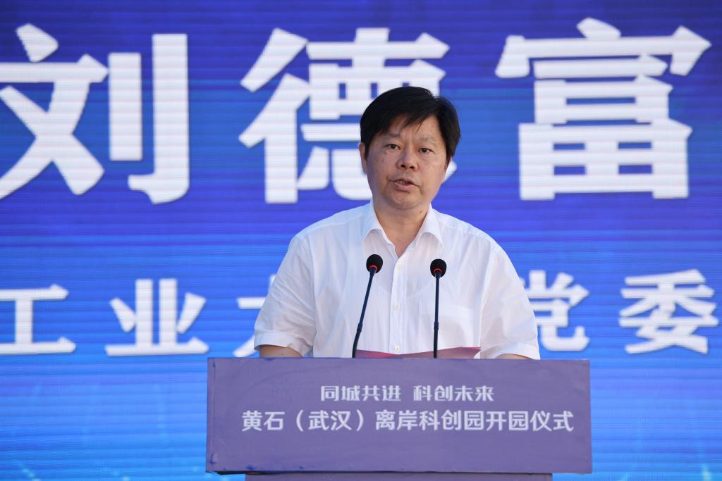 仪式由黄石市市长吴锦主持。刘德富代表湖北工业大学为大会致辞,从学校发展历史、学科优势、人才培养及与黄石合作等方面全面介绍了学校发展和服务黄石社会经济发展情况。他表示,我校与黄石市合作,在黄石(武汉)离岸科创园内共建科技成果转化中心,将围绕人才培养、产学研合作和科技成果转化等方面,抢抓武汉城市圈同城化发展机遇,共同推进学校与黄石深度合作。武汉市市委常委、东湖高新区党工委书记汪祥旺,省科技厅党组书记、厅长王炜、黄石市委书记郄英才和入驻企业代表分别致辞。