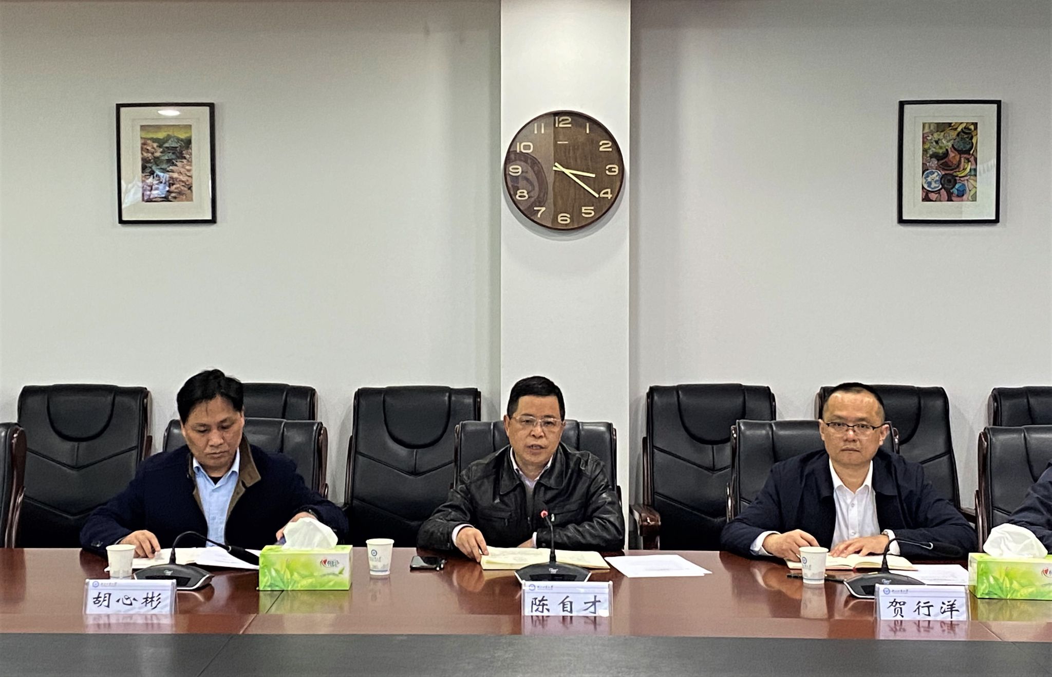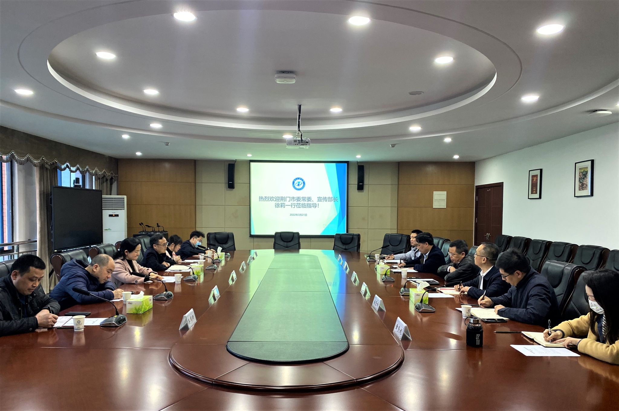 3月21日,荆门市委常委、市委宣传部长徐莉同志率荆楚科创城建设指挥部办公室一行来我校调研交流,校党委副书记、校长彭育园,校党委常委、副校长陈自才出席交流活动。